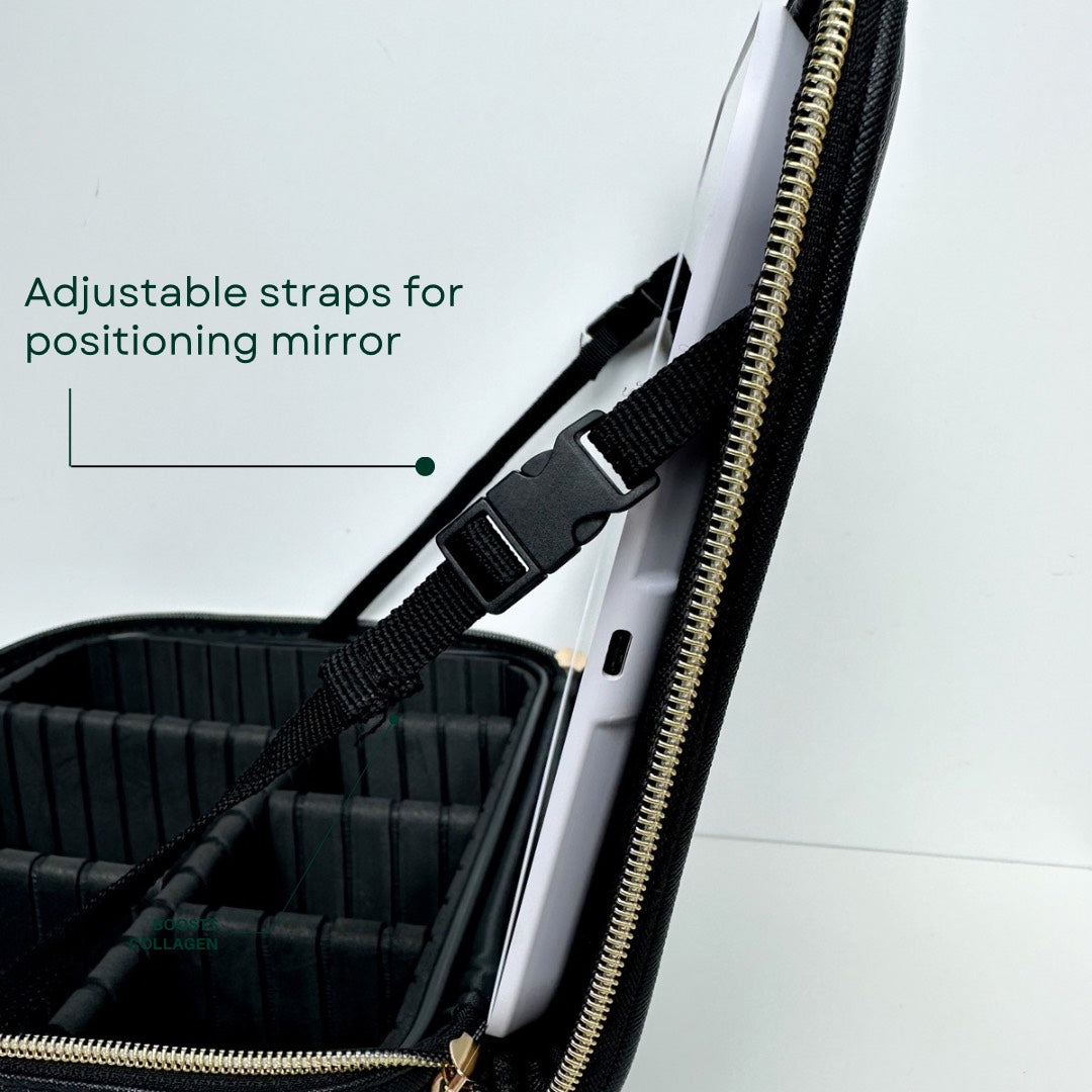 Every bag features a high-quality, built-in LED mirror that provides perfect lighting for applying makeup, skincare routines, or even just a quick check-up.